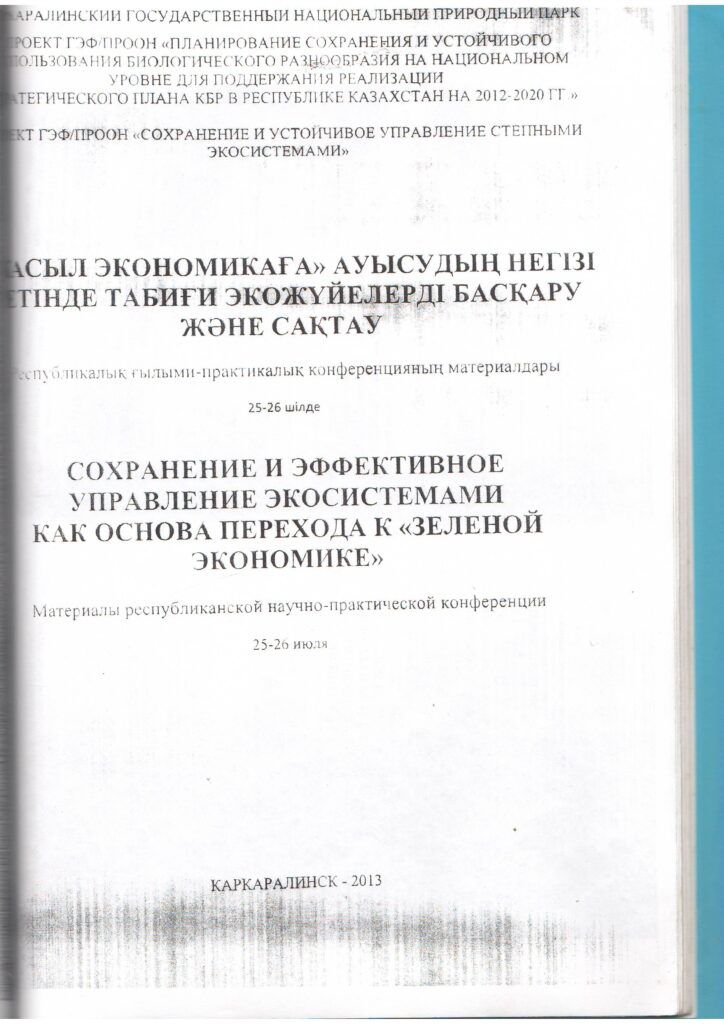 Сиверс алма ағашының екпелерін орман - экологиялық бағалау және Жоңғар - Алатауы МҰТП жағдайында оны молықтыру әдістерін әзірлеу (2013 ж.)