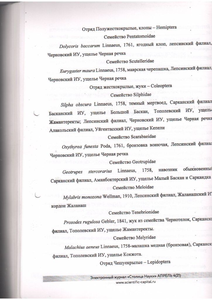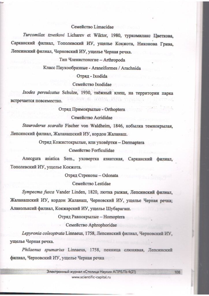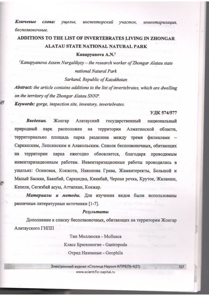 Жоңғар - Алатауы мемлекеттік ұлттық табиғи паркінде таралған омыртқасыздар тізіміне толықтырулар (2020 ж.)