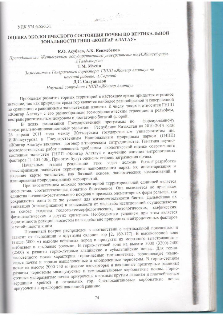 «Жоңғар-Алатауы» МҰТП аймақтылығы бойынша топырақтың экологиялық жай-күйін бағалау (2013 ж.)