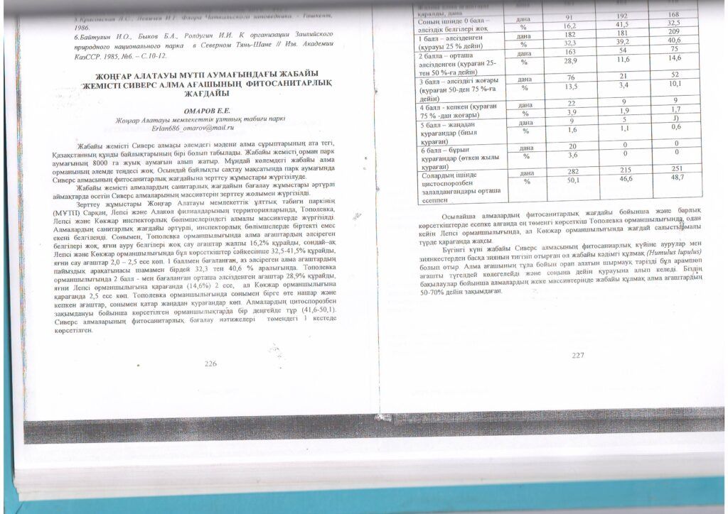 «Жоңғар - Алатауы МҰТП» аумағындағы Сиверс жабайы алма ағашының фитосанитарлық жағдайы (2017 ж.)