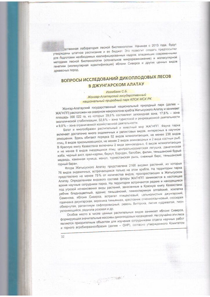 Жоңғар Алатауындағы жабайы жемісті ормандарды зерттеу мәселелері (2012 ж.)