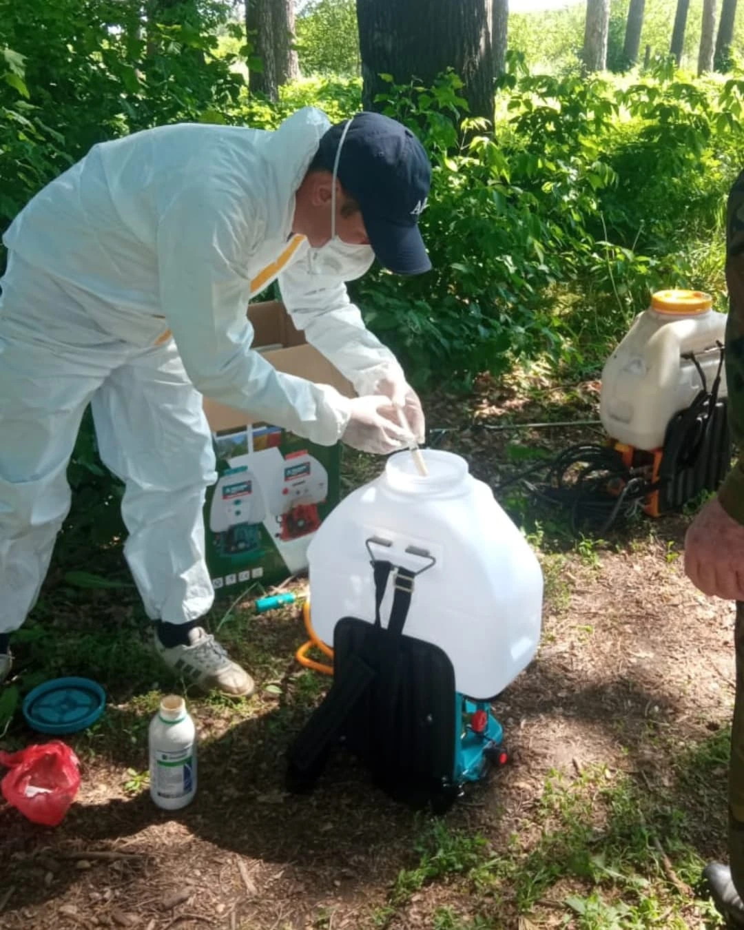 "Табиғи қорық қорын қорғау және қалпына келтіру" бөлімінің жұмыс жоспарына сәйкес Сарқан орман тұқымбағы бойынша аумағы 21, 84 га жеміс алма ағаштарына орман аурулары мен зиянкестеріне қарсы жер үсті өңдеу жұмыстары биопрепаратпен жүргізілді.