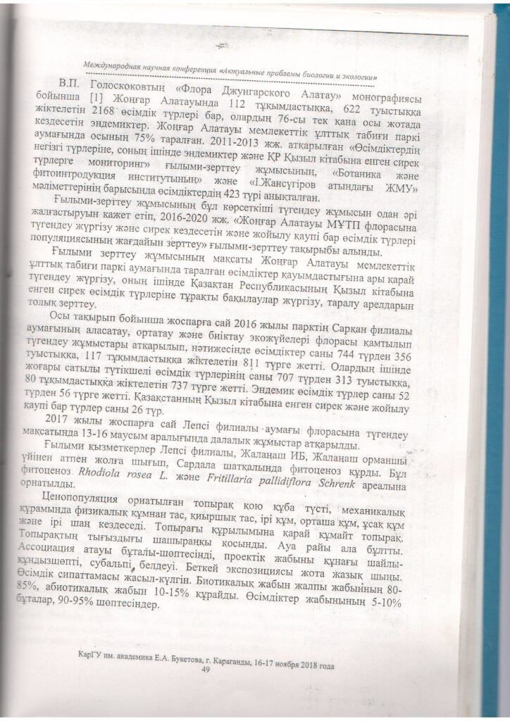 На территории Жонгар - Алатауского государственного национального природного парка, Лепсинского филиала (2018 г.)