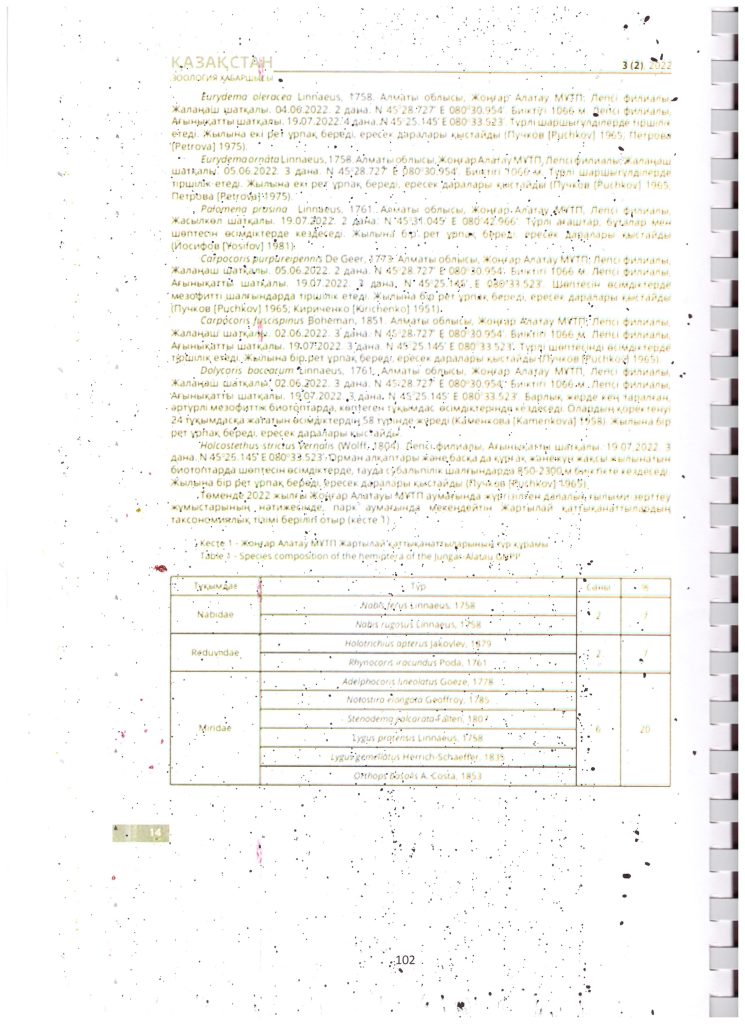 Полужесткокрылые Жонгар - Алатауского ГНПП (2022 г.)