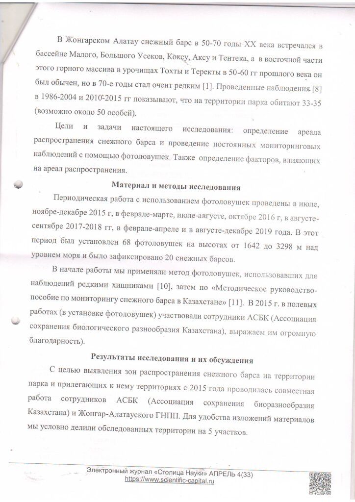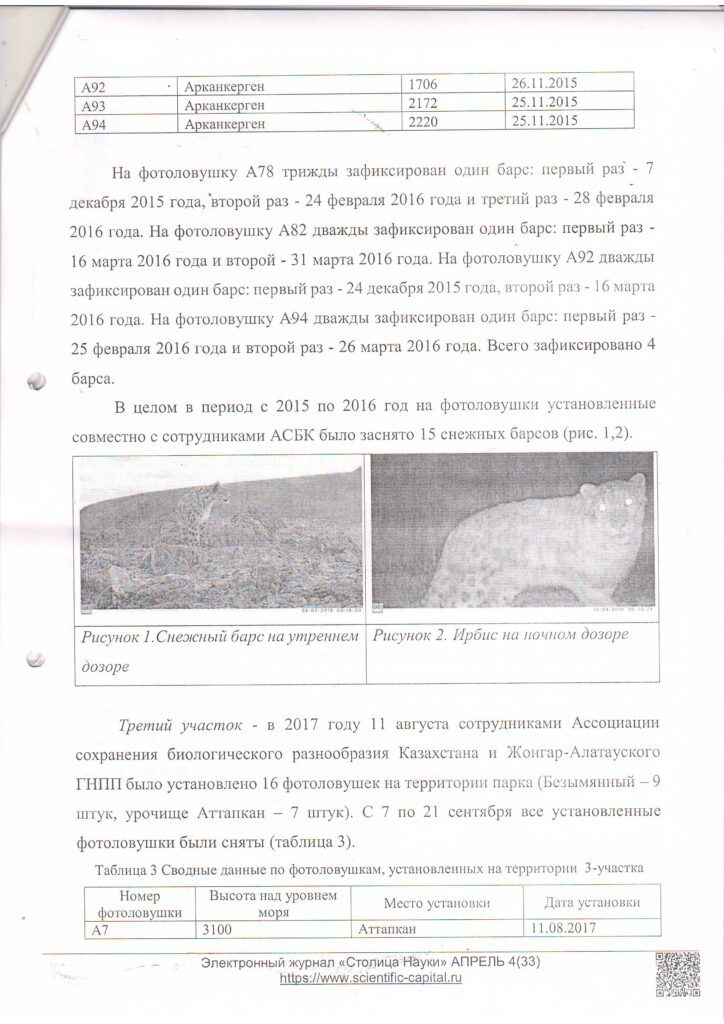 С помощью фотоловушек на территории Жонгар - Алатауского ГНПП за 2015 - 2019 годы (2021 г.)