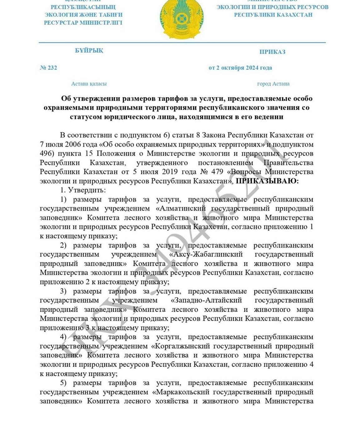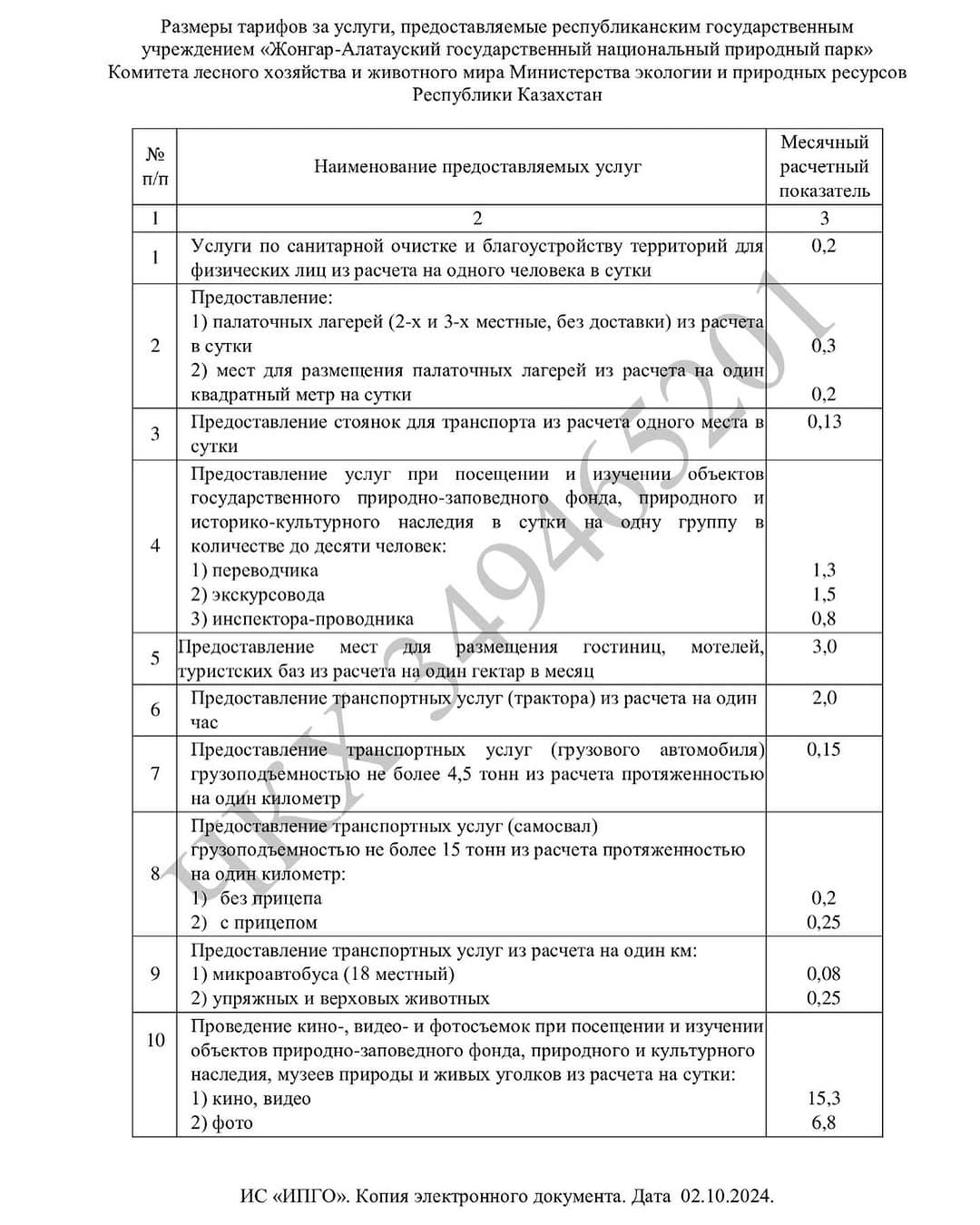 Уважаемые посетители «Жонгар-Алатауского ГНПП», напоминаем Вам об изменении размеров тарифов за услуги предоставляемые «Жонгар-Алатауским ГНПП».Месячный расчетный показатель (МРП) на 2025 год составляет – 3932 тг.