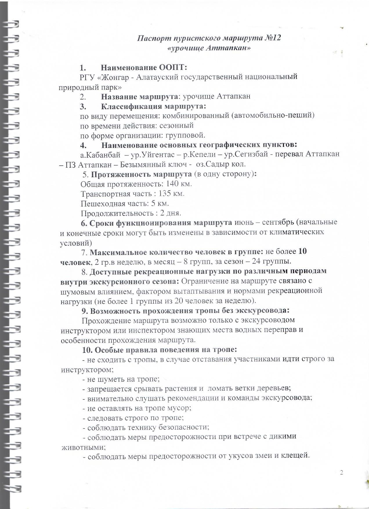 Туристский маршрут № 12 урочище "Аттапкан"