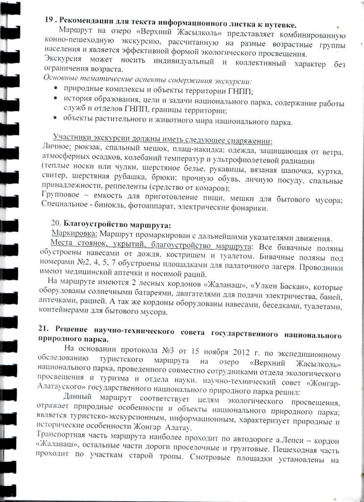 Туристский маршрут № 5 «Оз.Верхний Жасылколь»
